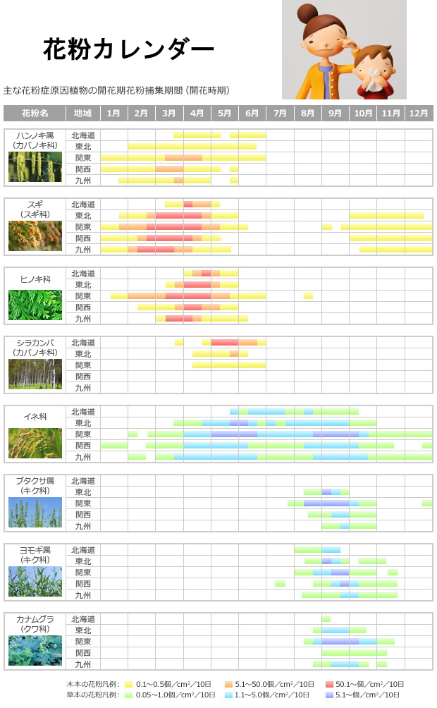 - 花粉症の症状が発生!2月〜5月がピーク